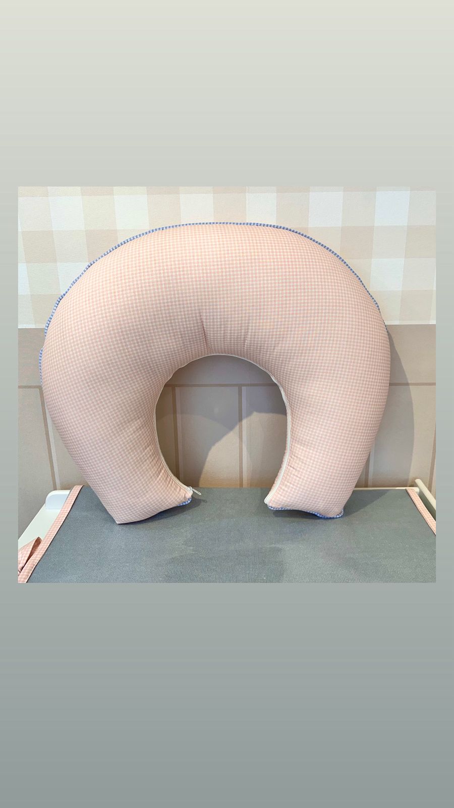 Almofada de Amamentação algodao rosa bebe quadriculada com rolote azul