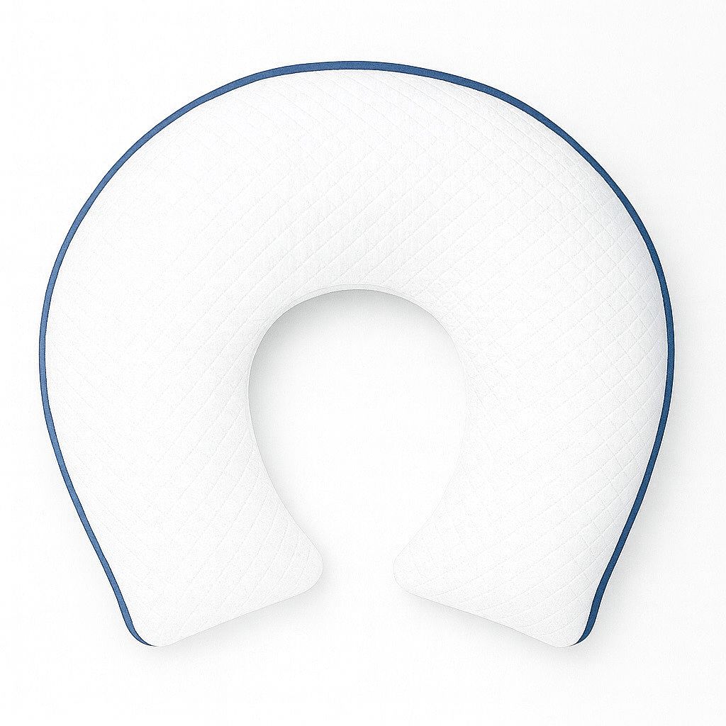 Almofada de Amamentação malha matelassada branca c/ rolote azul marinho