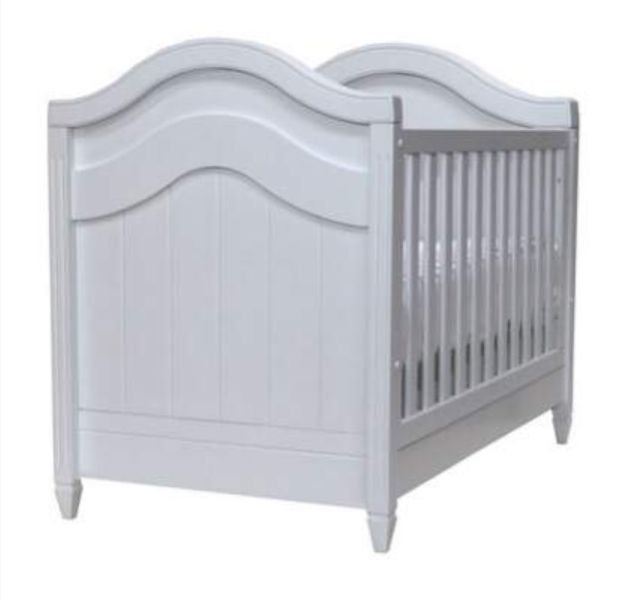 Berço padrão americano, estilo provençal com cabeceira ripada. Transforma em mini cama.
